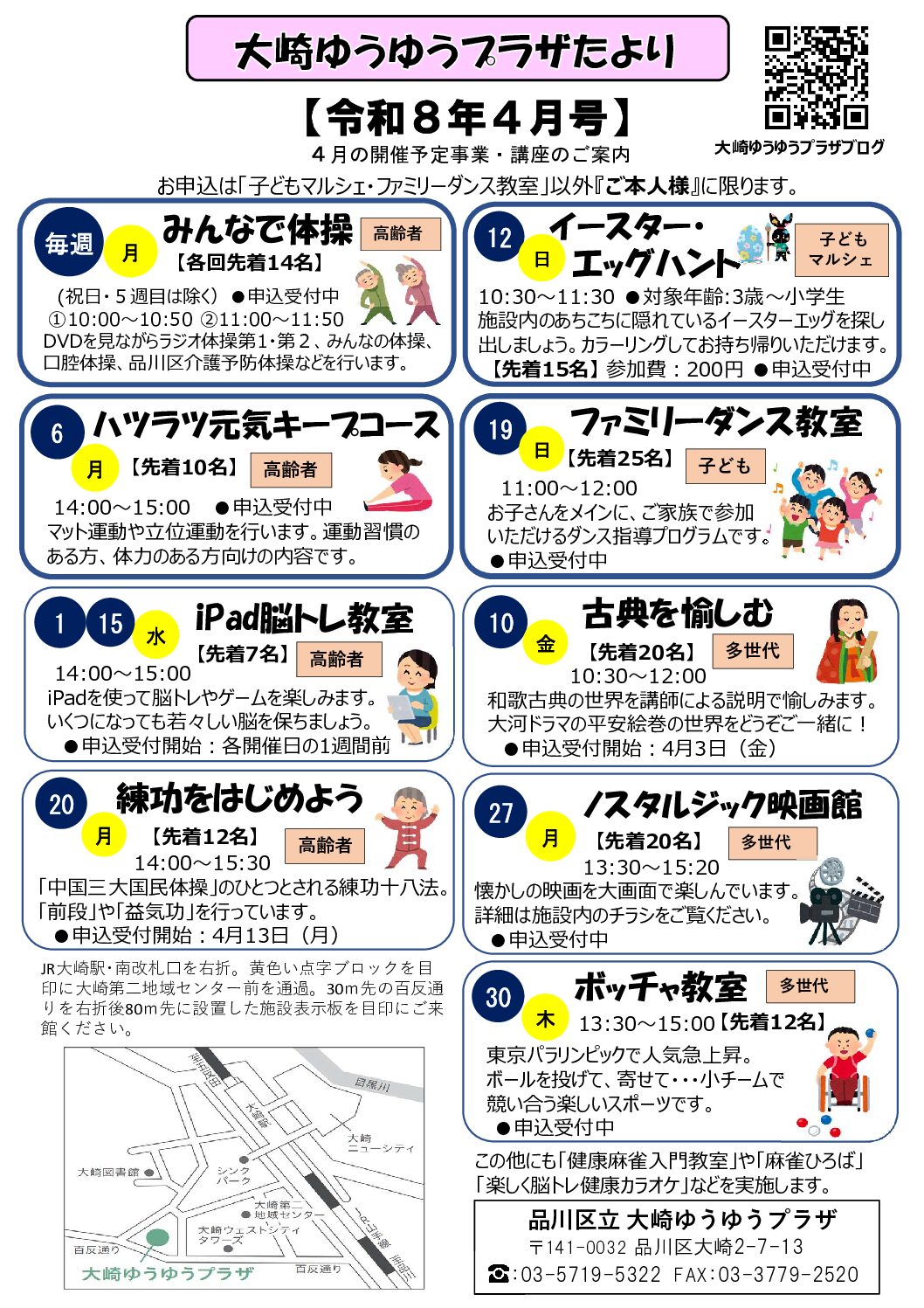 『大崎ゆうゆうプラザだより』4月号のお知らせ
