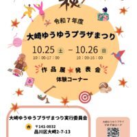 秋の恒例「大崎ゆうゆうプラザまつり」今年も開催します。 手芸や書道など団体の方々の作品展や、音楽、ダンスなど発表会。早稲田大学津軽三味線三津巴の演奏、大崎警察署による防犯講話、絵本の読み聞かせや紙芝居etc・・似顔絵コー …