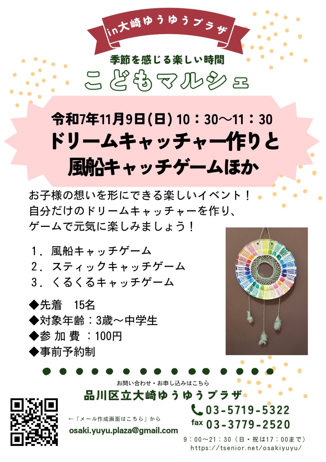 11月の子どもマルシェ「ドリームキャッチャー作りと風船キャッチゲームほか」