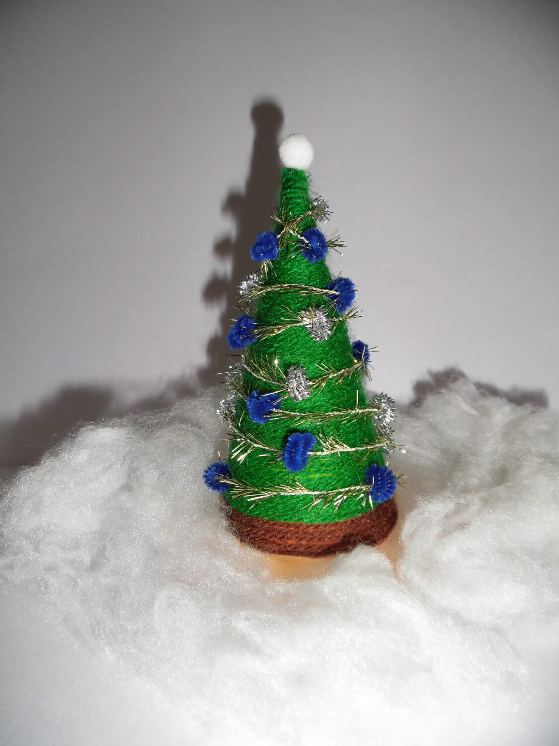 ←毛糸をつかってクリスマスツリーを仕上げる「クリスマス手芸教室」。