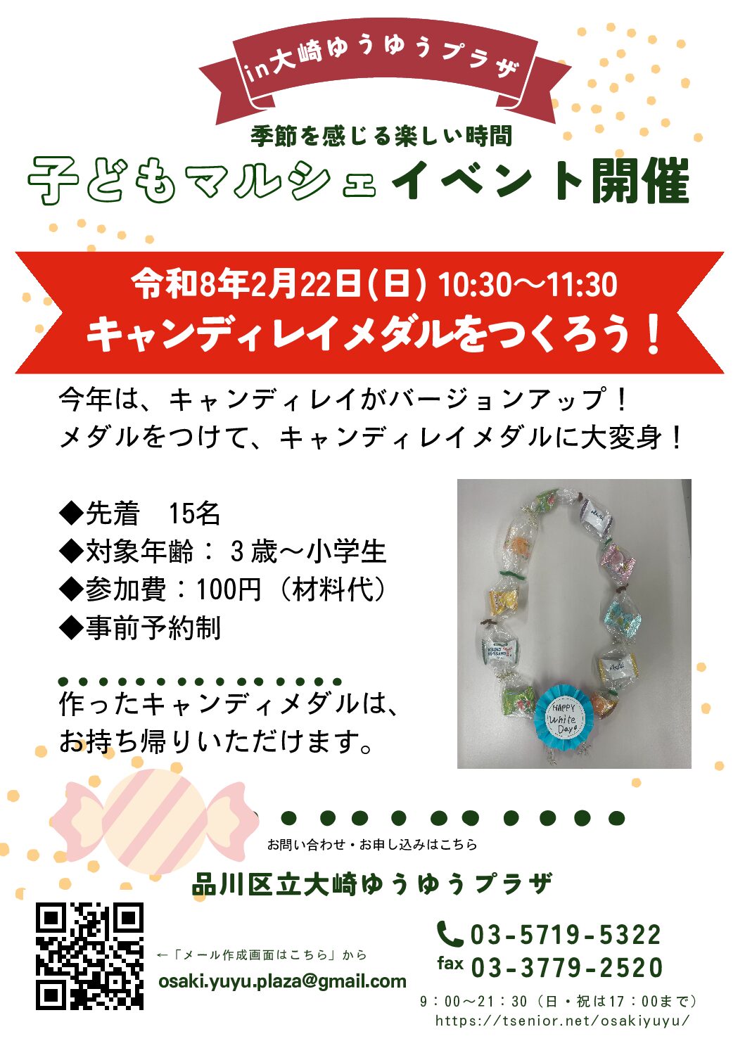 2月の子どもマルシェは「キャンディレイメダル」です。