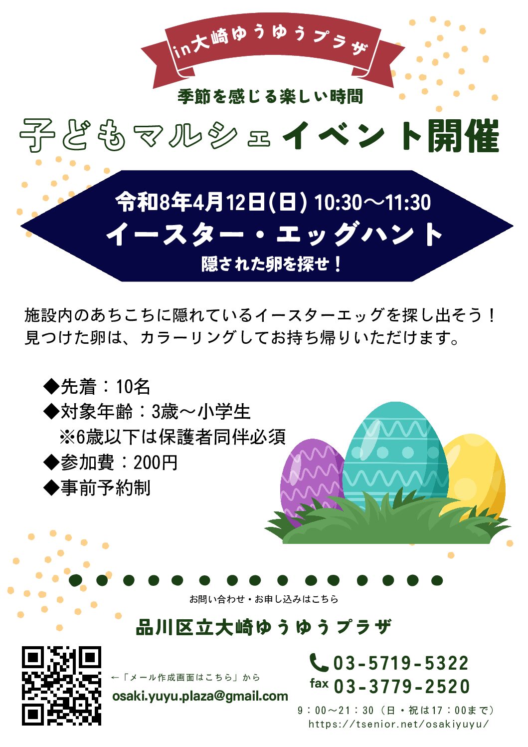 4月の子どもマルシェは「イースター・エッグハント~隠された卵を探せ!~」です。