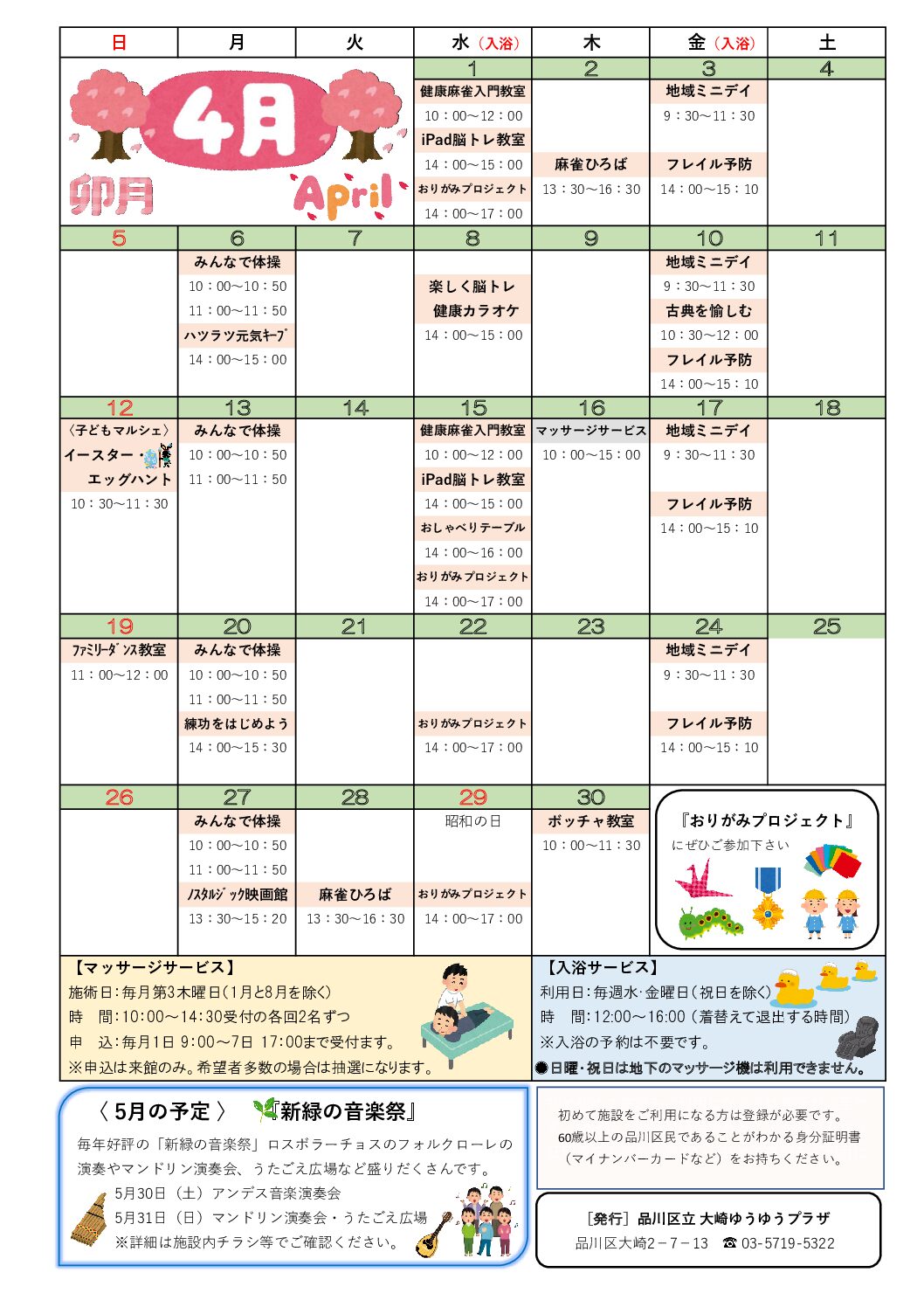 『大崎ゆうゆうプラザだより』4月号のお知らせ